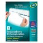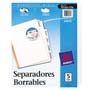 Separador de plastico t-/ carta, blanco, 5 div p-/ escritura, borrable, Avery